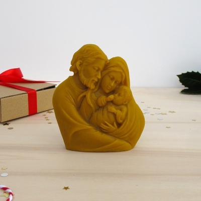 A figura da Sagrada Familia é feita de cera de abelha de natural pela nossa apicultora Vanessa.